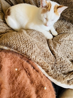服に付いてるパールちぎろうとしてくる🤣 可愛いけどやめて😇 こたつの布団の上でぬくぬくして寝てんのまじで可愛い💕