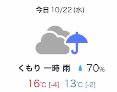 おはようございます 名古屋市は曇り 一時 雨だそうですアプリによって降水確率違うけど傘持って出るのを忘れないようにしないと もうちょっと後で再確認しとこ。