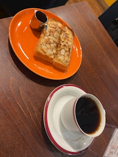 先日のモーニン👍 コーヒーが美味しいお店という事で、ココアを飲みたい気持ちをグッと抑えて。 アメリカンだけどコーヒー☕︎ アーモンドのトーストが美味しかった♡ 他のも食べてみたいなぁ😋 まあモーニングというか、モーニングセットみたいなかんじですが。