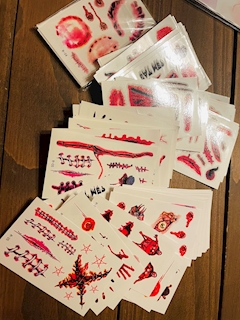 今年も大量に買ったので皆さま使ってください🩷 私は毎年全身傷だらけです😂笑 一緒に傷だらけやりましょ🩷笑 シールお店に置いとくので勝手に使ってください😊 とりあえず私はコスプレが入るのかが心配です。 笑 明日から絶食になるかもしれない笑笑 てか窓開けてねたらめちゃくちゃ寒かった🥹