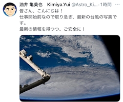 こんばんは✨ 宇宙からの台風情報を見ていたらちょっとこわくなっちゃった😵💫勢力弱まることを願います。