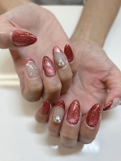 ニューネイル💅🏻 クリスマスっぽく でも... 終わっても 行ける感じの デザインにしたくて💕 お姉さんが これの黒を してたから 色違いで お願いしたのー💕 久々の赤❣️ いいね〜なんか💕 サンタコスにも 合うの 間違いなしね💕︎笑 この時間眠くなるー😴笑 今日は 離宮営業ですよ❣️ ららは お休みですが… 今週はサンタコス 楽しみー😘