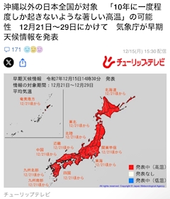 東海地方も21日くらいからかなり暖かくなるみたい👀 10年に1度ならこの時期に経験した事はある暖かさなのね🤔 過去にイヴやクリスマスに雪が降った記憶はあるけど暖かいってあんまり覚えてないかも…💭 今日あたりから気圧の変化も凄いみたいだから頭痛とか酷い人は大変かも😣 真冬で暖かいなら過ごしやすそうだけどなぁ🍀.* 気温差でまた風邪には気を付けないとね🤧