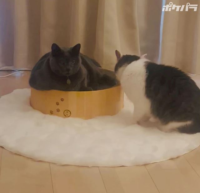 うちの子達の喧嘩何か弱そう笑 ちょんちょん手出すの可愛いすぎる🥹 激しい時は激しいけど🔥 これは爪とぎの場所の取り合いなのかな❓🐱