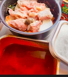 変な時間にこんばんは🌆✨ 眠れなくなったので この前友達にもらった パスタの残りのアメリケーヌソース🦐を ポトフに足して追加の野菜とお肉も入れて 追いポトフ作りました🥹 海老の風味がやばくて やみつきになりそう🥹🥹🥹