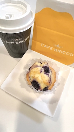 おはよう🌈 豆乳抹茶ラテに ブルーベリーチーズマフィン❣️ マフィンがすごく美味しくて感動した🥹✨