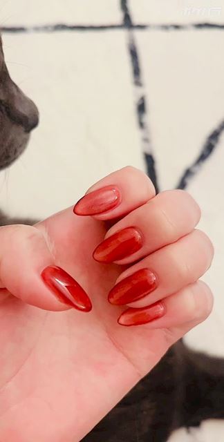 動画の最後、猫様のお尻で手がバンってなった🐱 マグネットのワンカラー🧲 動画よりも落ち着いた色味の赤🟥 意外とお気に入り♡ 秋っぽく茶系にしようかなと思ったけど無難な感じに🥺🤲 艶ん艶ん可愛い((o(。・ω・。)o))