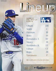 Good morning♡ドジャース観てるよ👀✨本日のスタメンはロハスが入ってますね!今日も2番スミスだ♡そして3回にドジャース先制!スミスとベッツのタイムリーでした✨ベッツが打つと嬉しくなる🥰でもさっそく1点返されてしまった。。。まだまだ試合は長いのでなにがあるかわからない!!!ひとつのミスが失点に繋がるので油断せずいこう🔥楓-kaede-